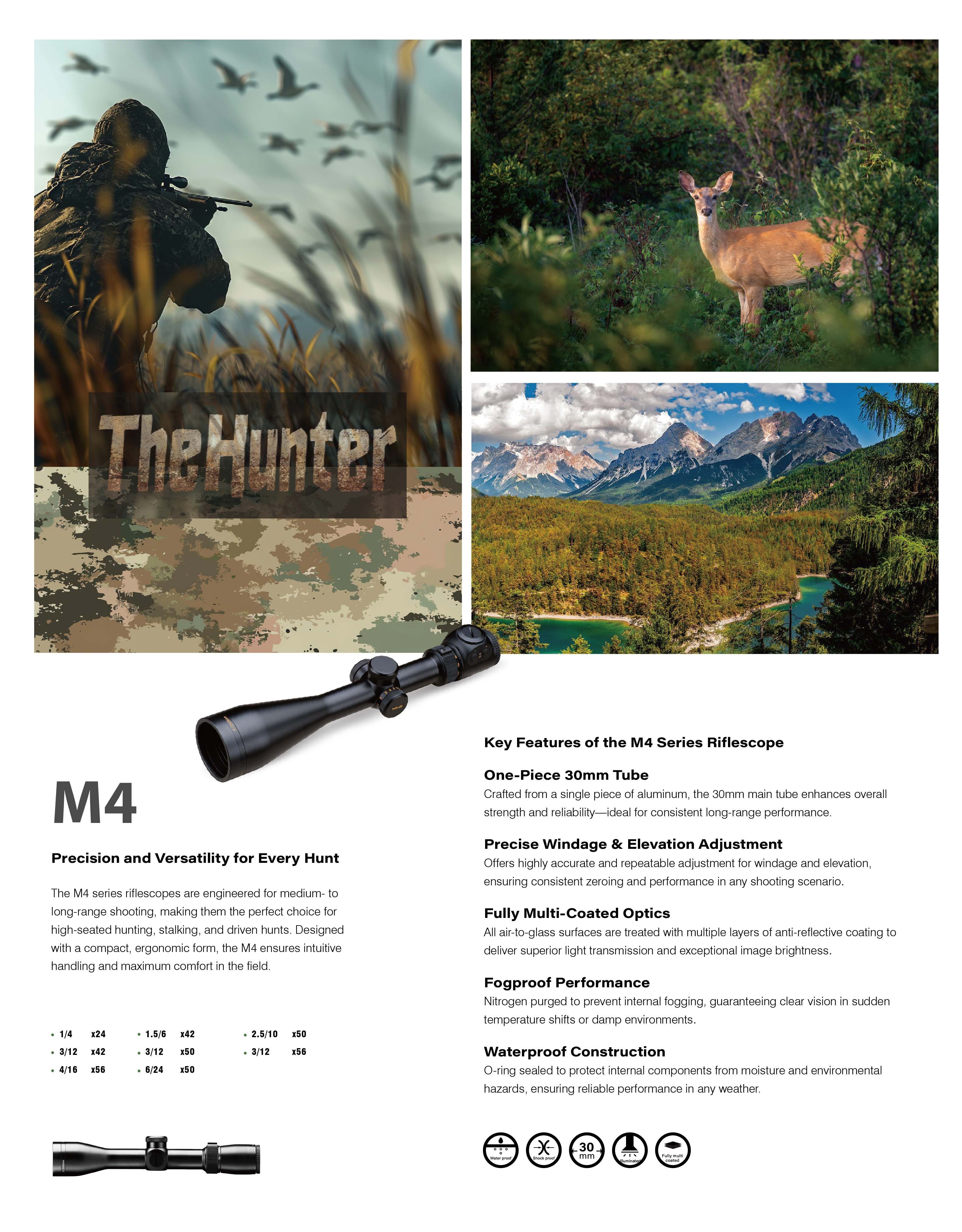 The M4 series is designed for precision shooting, delivering fast target acquisition and clear, reliable optics. Its rugged, shock-resistant aluminum housing is built to withstand recoil and harsh field conditions, making it ideal for hunting, tactical training, and competitive shooting.