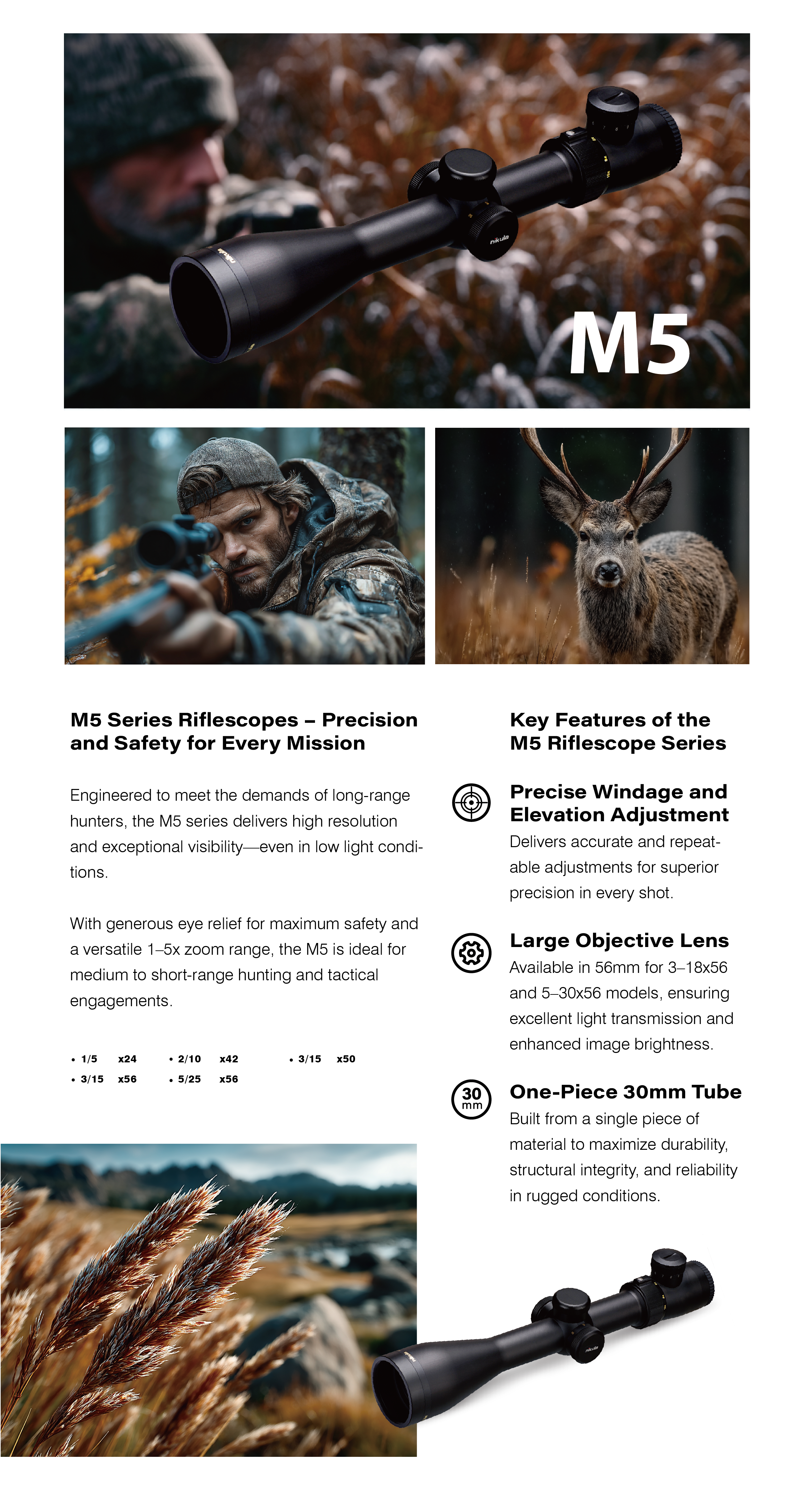 Features: . Precise windage and elevation adjustment . Large objective lens . One-piece 30mm tube